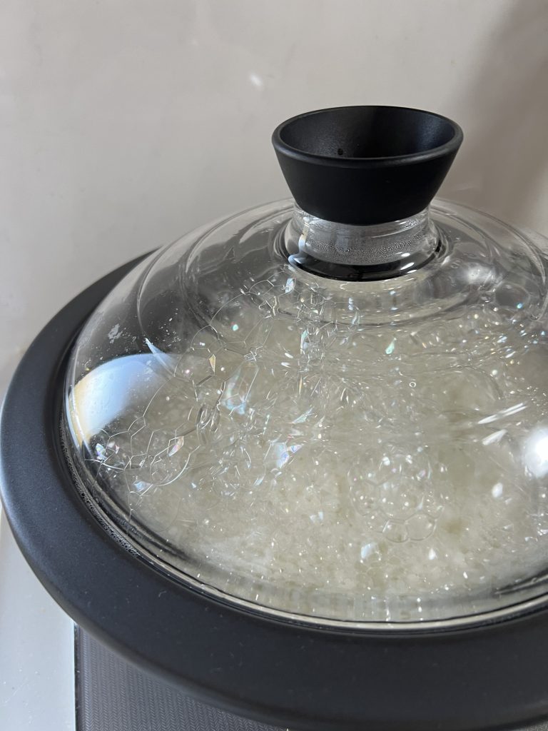 そして土鍋でご飯を炊くと、