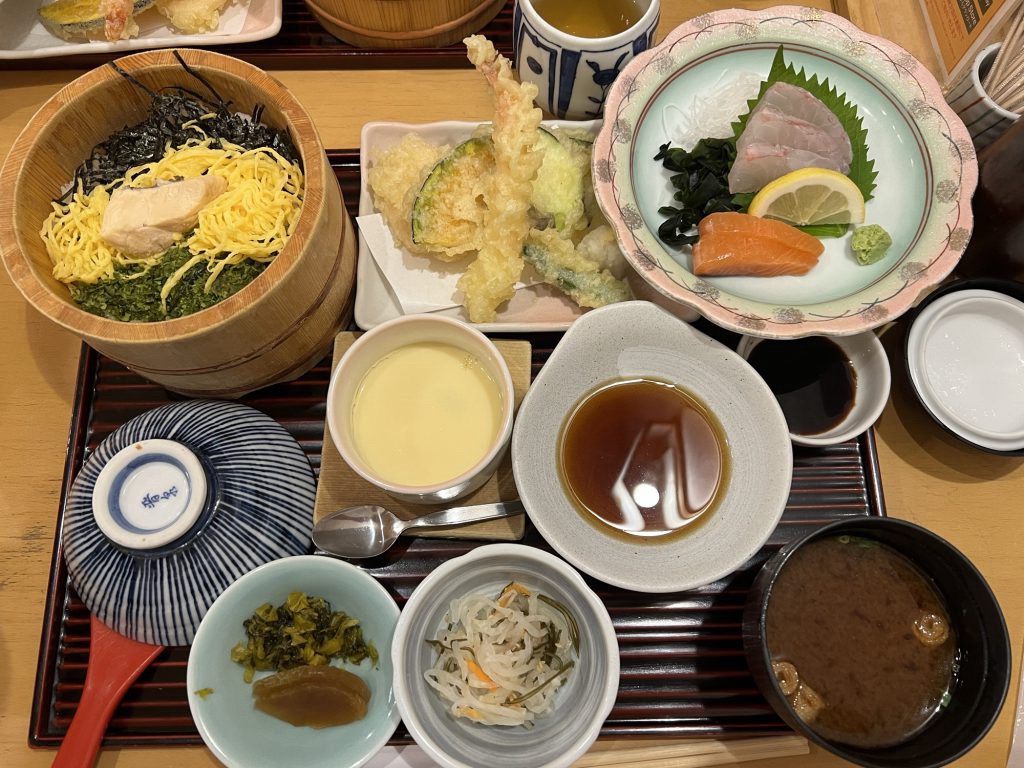 味噌汁、天ぷら、茶碗蒸し、漬物😆